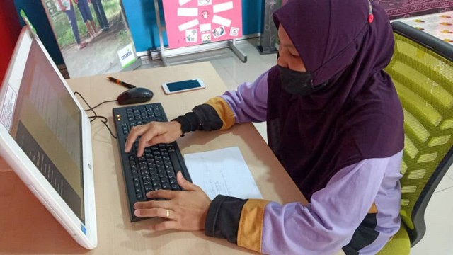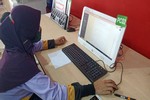 Staf pusat internet telah memberi tunjuk ajar kepada salah seorang komuniti setempat yang hadir ke Pusat Internet untuk memohon tunjuk ajara Staf Pusat Internet untuk mengisi borang maklum balas secara atas talian. Staf Pusat Internet memberi tunjuk ajar dan memberi garis panduan untuk mengimbas QR kod pada komputer bagi membuka link maklum balas dan menjawab maklum balas tersebut.