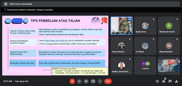 13 Jun 2022 | Aktiviti TerkiniPada 12 Jun 2022, telah diadakan Program Webinar Pemerkasaan Pengguna 2022 anjuran FOMCA dengan kerjasama PEDi Felda Pasoh 2. Program ini bermula dari jam 11.00 pagi hingga 12.30 tengah hari. Program ini diadakan bertujuan memberi kesedaran kepada pengguna untuk berbelanja dengan bijak dan membuat pilihan yang bijak sebagai pengguna. Talk ini telah disampaikan oleh Puan Norashikin binti Aminudin,Wakil FOMCA. Antara topik yang disampaikan adalah penerangan mengenai hak-hak dan tanggungjawab pengguna, ciri-ciri pengguna yang lestari, kenali ciri utama “online scammer dan bantuan khidmat nasihat untuk pengguna. Di samping itu, Puan Norashikin turut memaparkan video-video mengenai kesederan hak pengguna dan situasi penipuan yang sering terjadi kepada pengguna. PEDi mengucapkan terima kasih kepada pihak FOMCA atas kerjasama dan semoga peserta mendapat menfaat daripada webinar ini dan menjadi pengguna yang bijak.