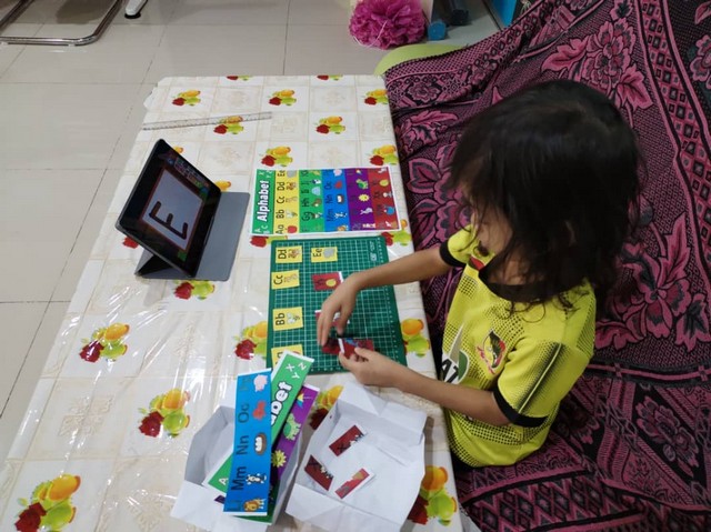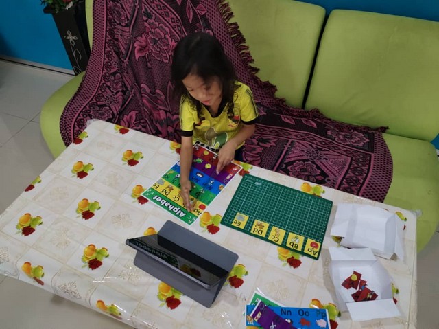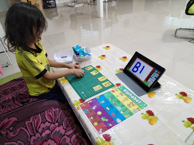 Selain daripada itu, staf PEDi turut menyediakan puzzle ABC untuk adik Muhammad susun puzzle tersebut. Permainan melalui website abcya.com berserta puzzle ABC sangat membantu adik Muhammad untuk kenal dan hafal huruf tersebut.