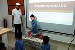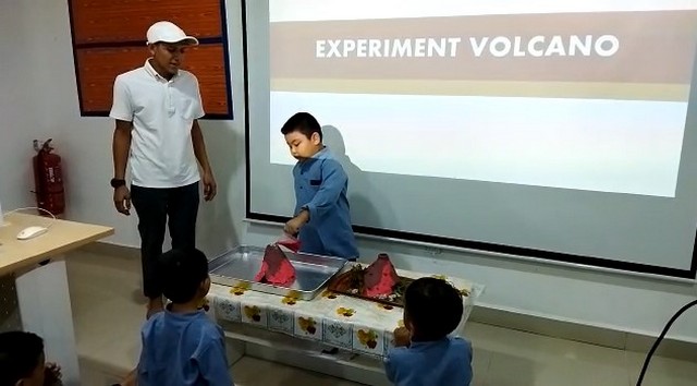 Kemudian sesi mengenali “Pekerjaan Saya”. Sesi yang ke 2 adalah sesi “Volcano Experiment” bersama kanak-kanak tabika. Staf PEDi membuat demo letusan gunung berapi menggunakan 3 bahan iaitu cuka, baking soda dan pewarna makanan. Kemudian giliran kanak-kanak tabika pula memcuba untuk demo letusan gunung berapi. Sesi yang ketiga adalah sesi soal jawab mengenai peralatan komputer. Staf PEDi bermain soal jawab bersama kanak-kanak Tabika KEMAS. Kepaa yang Berjaya menjawab soalan dengan betul, akan diberi hadiah.