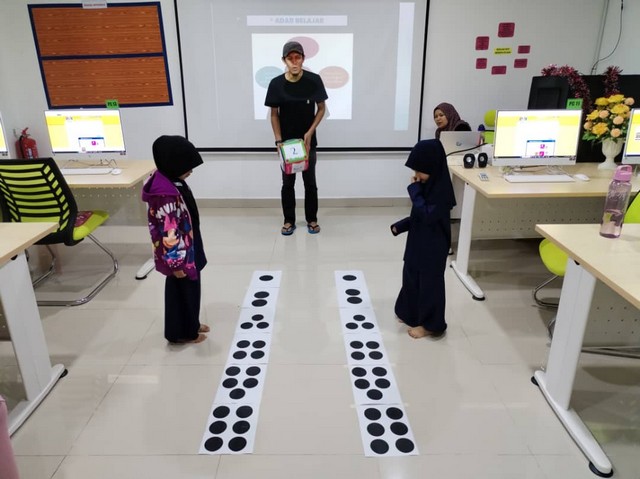 Sesi yang ke 2 adalah Aktiviti STEM Nombor Dadu. Dalam permainan ini staf PEDi melekatkan nombor 1 hingga 6 dan menjadikan 2 barisan, kemudian 2 kanak-kanak tabika akan duduk di belakang barisan nombor tersebut. Staf PEDi melemparkan dadu tersebut dan nombor yang jatuh tersebut, kanak-kanak tabika perlu melompat pada nombor tersebut.