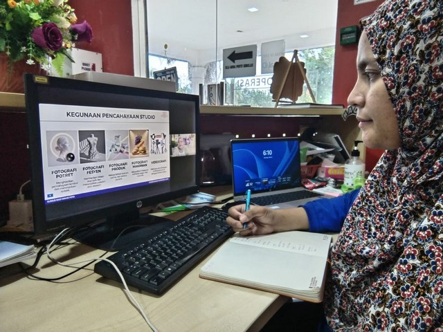 Pembelajaran Mahir Foto minggu ini memberi pendedahan kepada peserta mengenai teknik asas pencahayaan studio, termasuk penggunaan lampu, sudut cahaya, dan kawalan bayang untuk menghasilkan gambar yang berkualiti. Peserta turut mempelajari tips dan trik pencahayaan yang sesuai bagi potret, fotografi makanan dan produk, serta diberi peluang menjalani sesi praktikal untuk meningkatkan kemahiran secara hands-on. Disamping itu, membantu peserta memahami teknik pencahayaan dengan lebih efektif bagi menghasilkan gambar yang lebih profesional dan menarik.